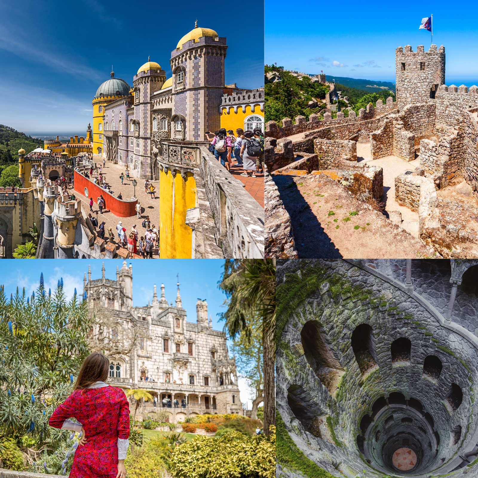 Paisagem deslumbrante sobre o oceano. Passeio pela maravilhosa e romântica Vila de Sintra, passando pelo castelo e palácios.